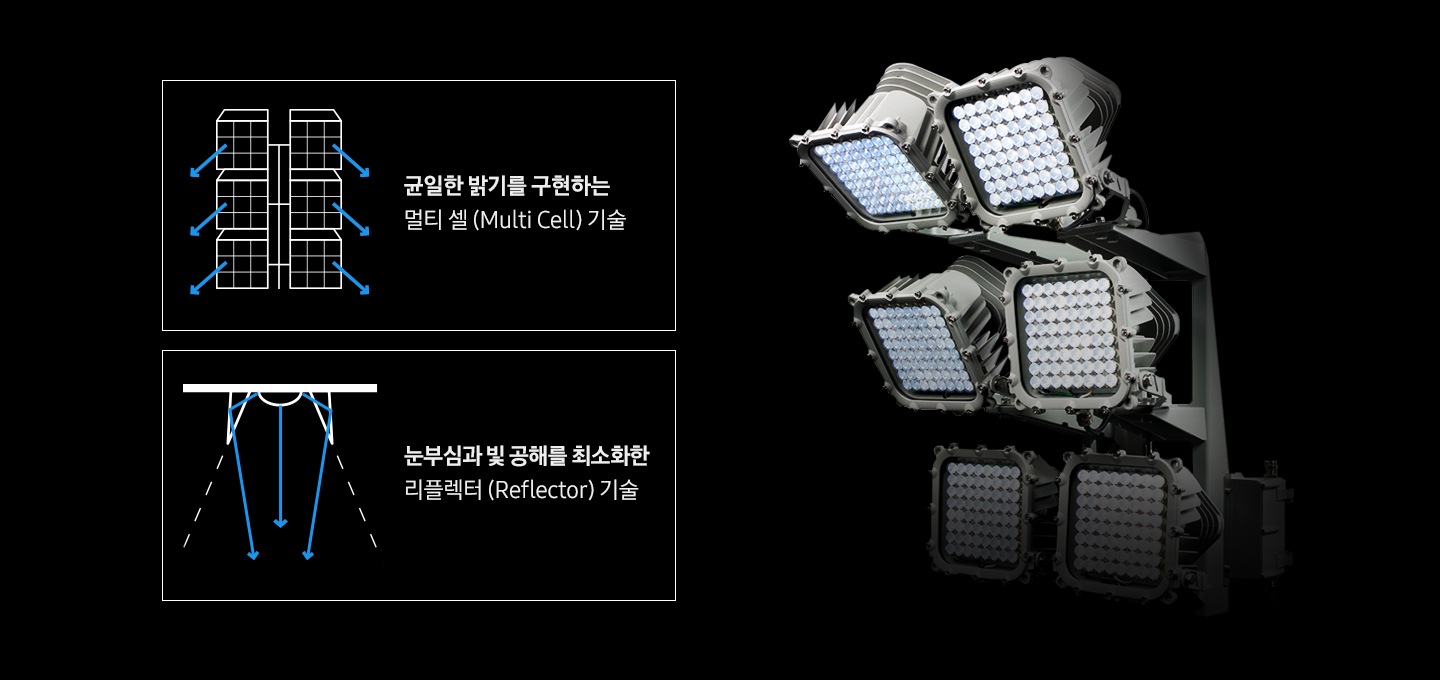 ±ÕÀÏÇÑ ¹à±â¸¦ ±¸ÇöÇÏ´Â ¸ÖƼ ¼¿±â¼ú°ú Á¶¸í ¹Ý»çÆÇ(Reflector) ±â¼ú·Î ¾ß°£ °ñÇÁ¿¡ ÃÖÀûÈµÈ Á¶¸í ¼Ö·ç¼ÇÀ» Á¦°øÇÕ´Ï´Ù.