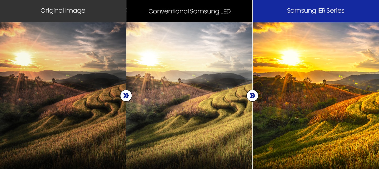 »ö°¨ Ç¥ÇöÀÌ Á¦ÇÑÀûÀÎ ±âÁ¸ LED µð½ºÇ÷¹À̿ʹ ´Þ¸® IER ½Ã¸®Áî´Â µ¶º¸ÀûÀΠȸ»öÁ¶ ¼³Á¤ ±â¼ú·Î Àû»ö°ú ³ì»ö, û»öÀ» Á¤È®ÇÏ°Ô ±¸ÇöÇÕ´Ï´Ù.