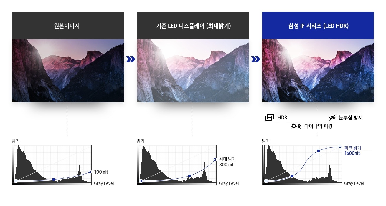 * Âü°í: ±âÁ¸ LED µð½ºÇ÷¹ÀÌ´Â HDR ¿µ»ó ±â¼úÀ» Æ÷ÇÔÇÏÁö ¾Ê½À´Ï´Ù.