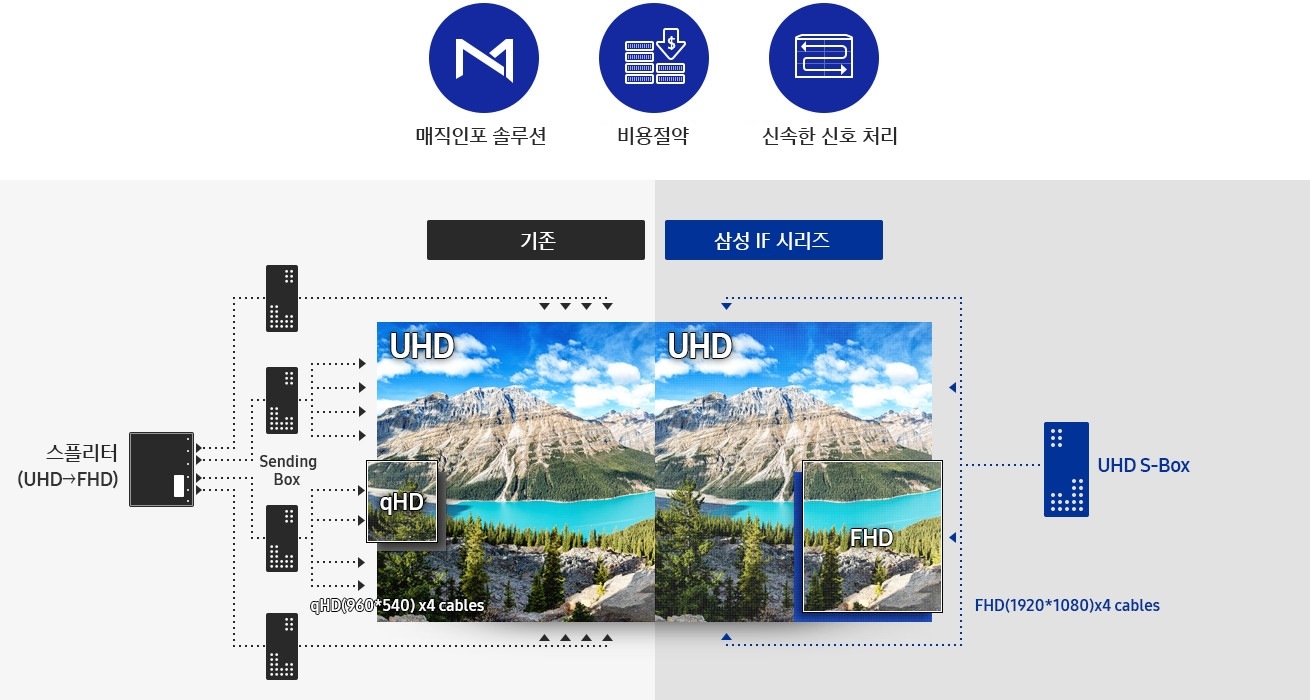 °í°¡ÀÇ ½ºÇø®ÅÍ(¿µ»ó ºÐ¹è±â)³ª ¿©·¯ ´ëÀÇ ÄÁÆ®·Ñ ¹Ú½º¸¦ ¿¬°áÇÒ Çʿ䰡 ¾øÀ¸¸ç ±âº» Á¦°øµÇ´Â ¿ø Ä¿³ØÆ® ÄÉÀ̺í·Î ¿Ïº®ÇÏ°Ô ½ÅÈ£¸¦ ÀÌÁßÈÇÒ ¼ö ÀÖ½À´Ï´Ù.